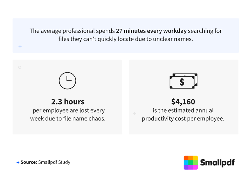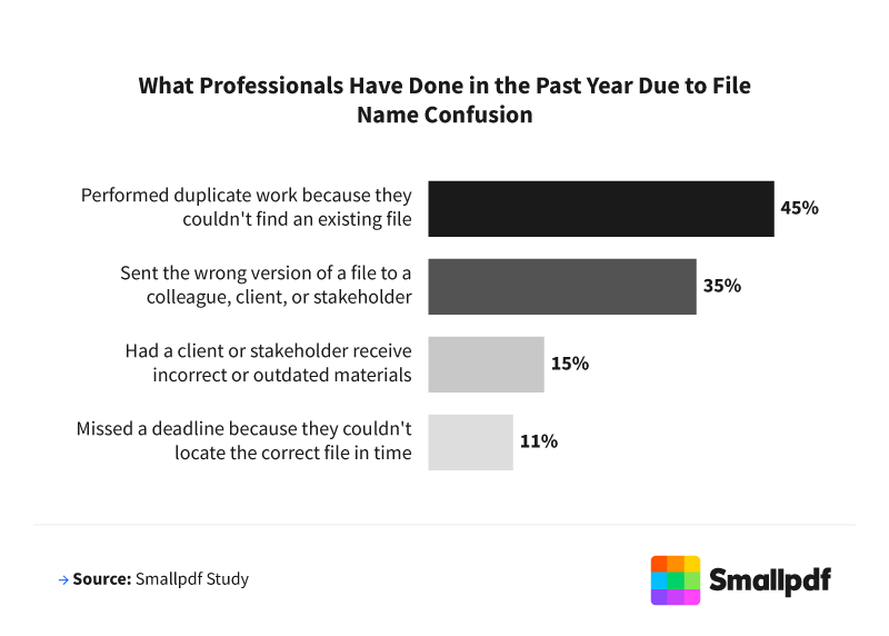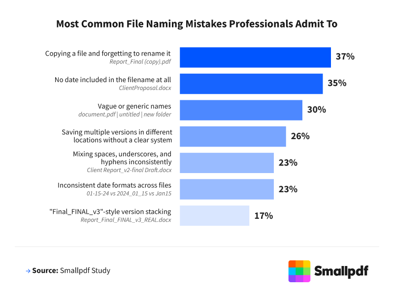 To understand how common this problem is, Smallpdf surveyed 1,000 working professionals across the United States. As a platform focused on making document tasks faster and easier, Smallpdf wanted to see how file-naming habits affect productivity, accuracy, and day-to-day workflows.