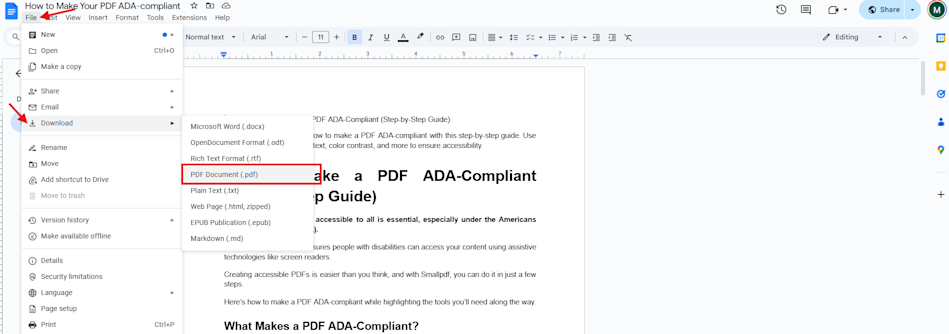 Download Your Google Doc into PDF