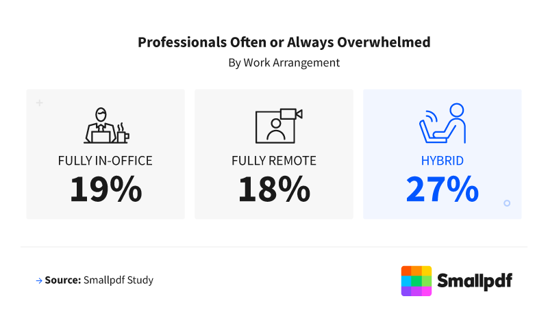 64% of professionals have had to work late or over the weekend due to delays or disorganization in a document workflow, rising to 72% among hybrid workers.