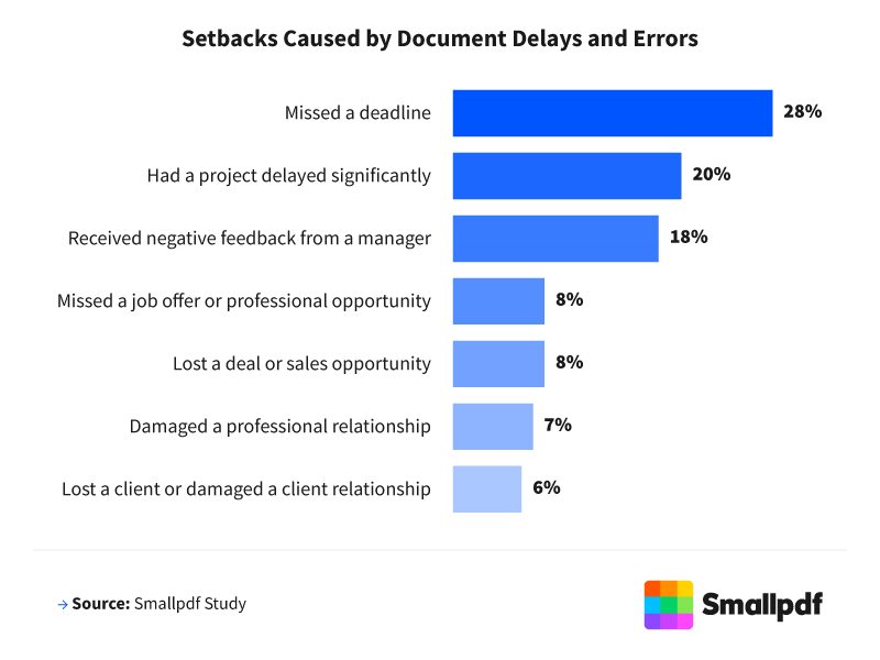 55% of professionals have experienced a setback, such as a missed deadline, a lost deal, or a damaged relationship, as a result of a document delay, an error, or incomplete paperwork.