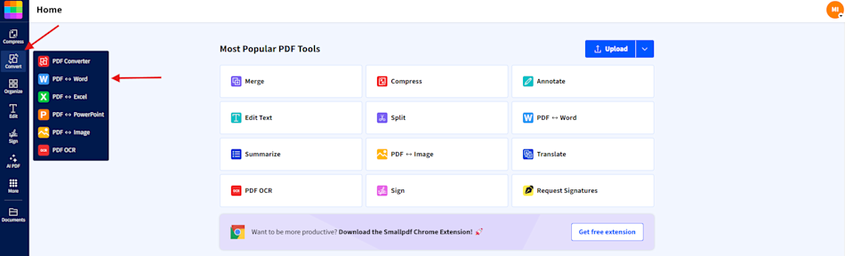 - Upload your PDF to the Smallpdf PDF to Word converter.