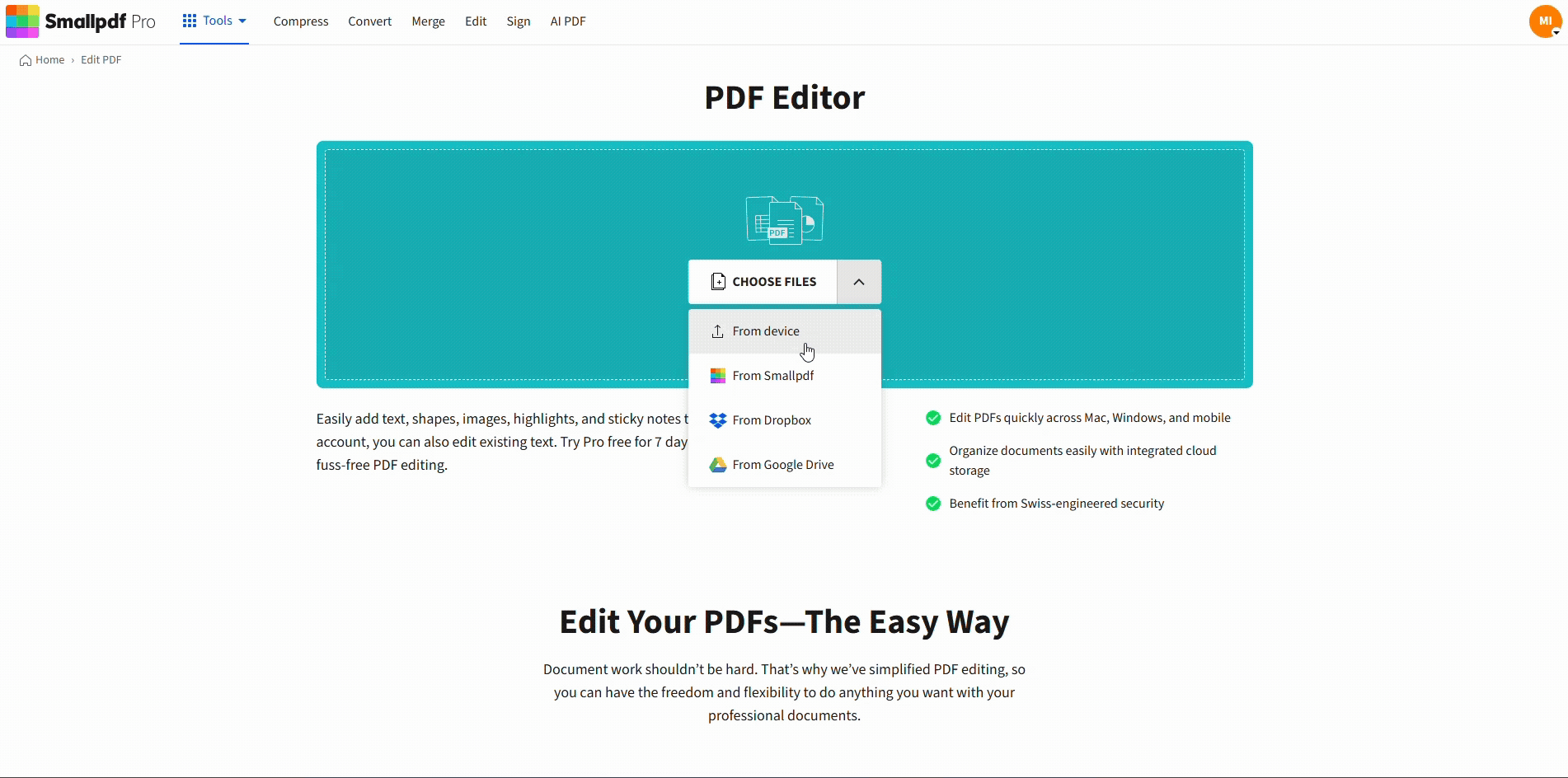 - Upload your PDF to Smallpdf Edit PDF.
