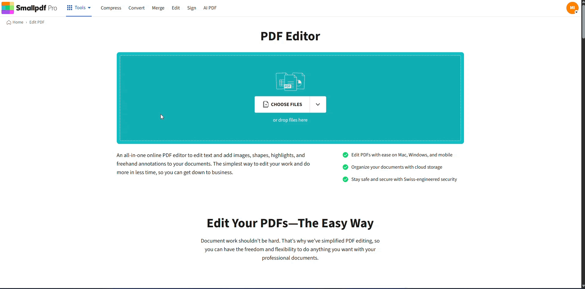 You can edit, annotate, and sign first, then flatten, compress, and protect everything in one smooth workflow with Smallpdf.