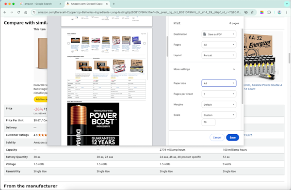 Wrong page breaks: Look for “More settings” to adjust margins or try a different paper size like A3.