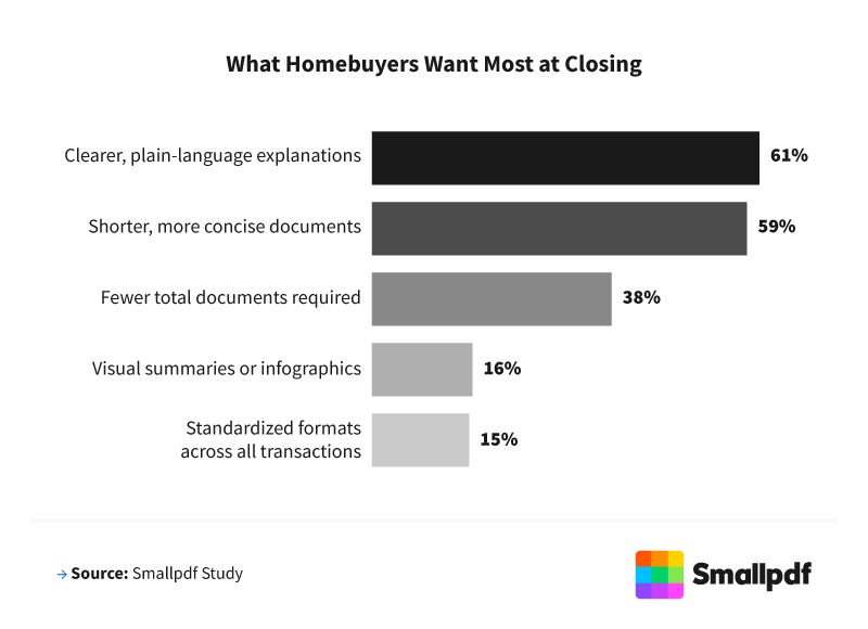 Overall, 76% said there was simply too much paperwork involved in the process, and only 56% felt confident in what they were signing. More than half (62%) agreed that eSignature options made the process easier, and 81% think the closing process could be more streamlined.