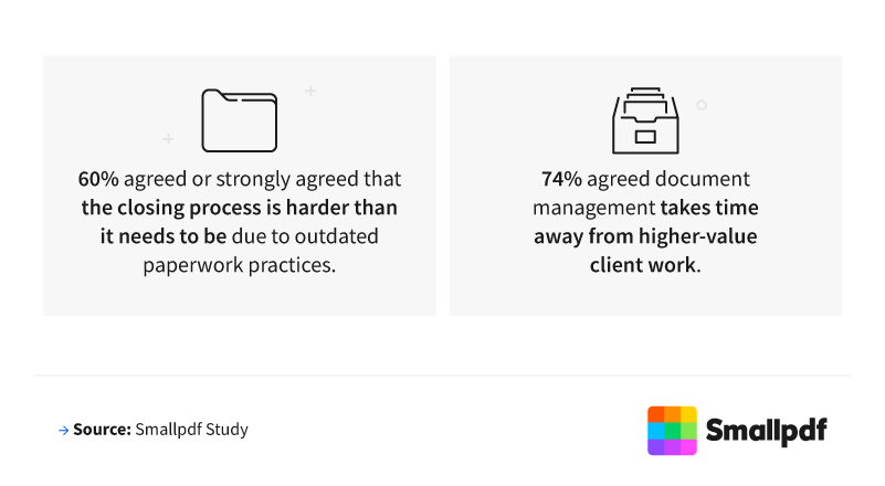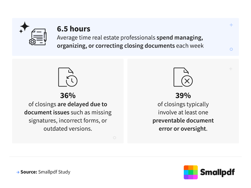 To find out, Smallpdf surveyed 151 U.S. real estate professionals and 850 homeowners about their experiences with closing documents. The findings reveal how administrative burden may be one of the biggest bottlenecks in today's transactions.