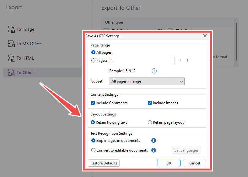Convert PDFs to/from Word, Excel, PowerPoint, images, rich text, HTML, and other