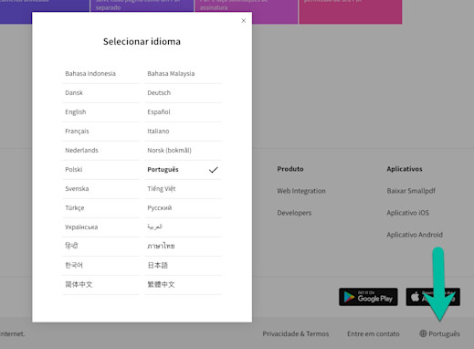 Como alterar a configuração de idioma no Smallpdf